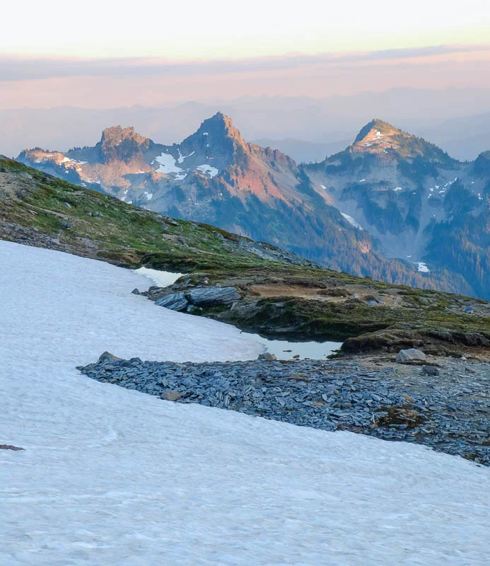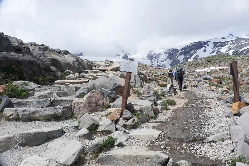 After a prayer and a triple-check of our gear we were off, hiking through nicely-manicured, paved trails just off of the visitors’ center at the foot of The Mountain. My feet and calves ached just with the thought of how early in the day we were.